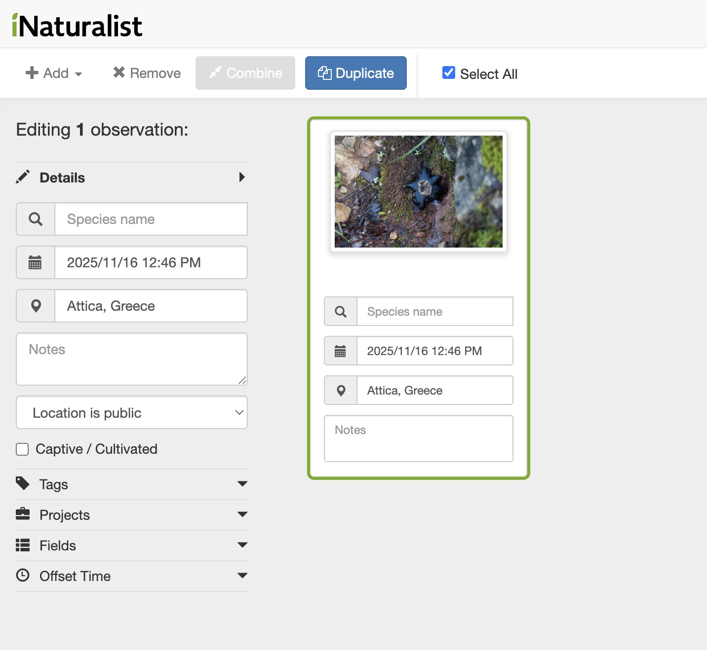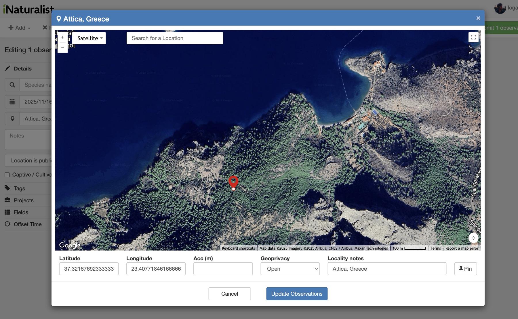 Using iNaturalist with non-geotagged photos: approximate bulk geotagging